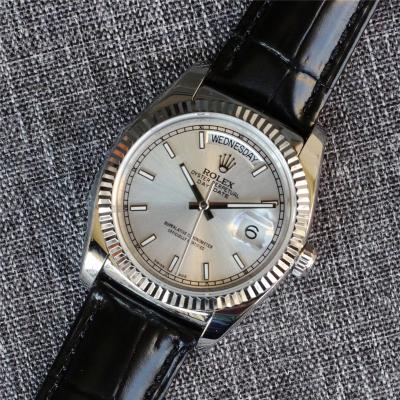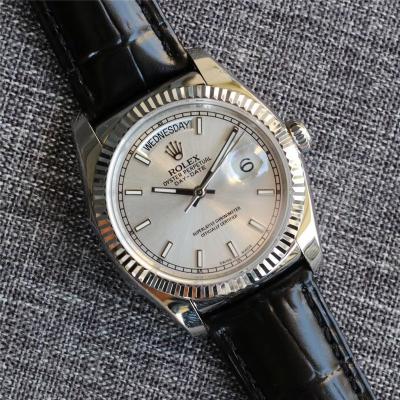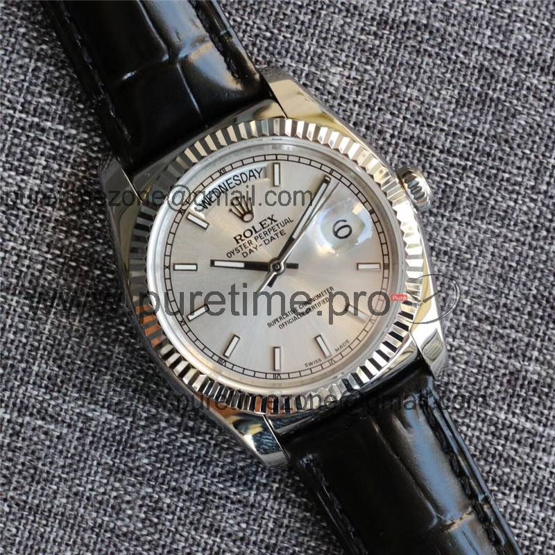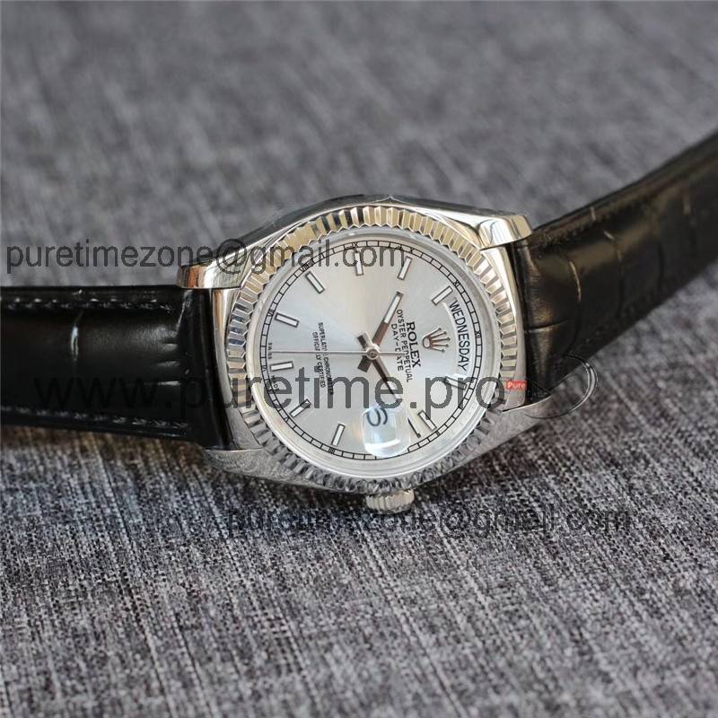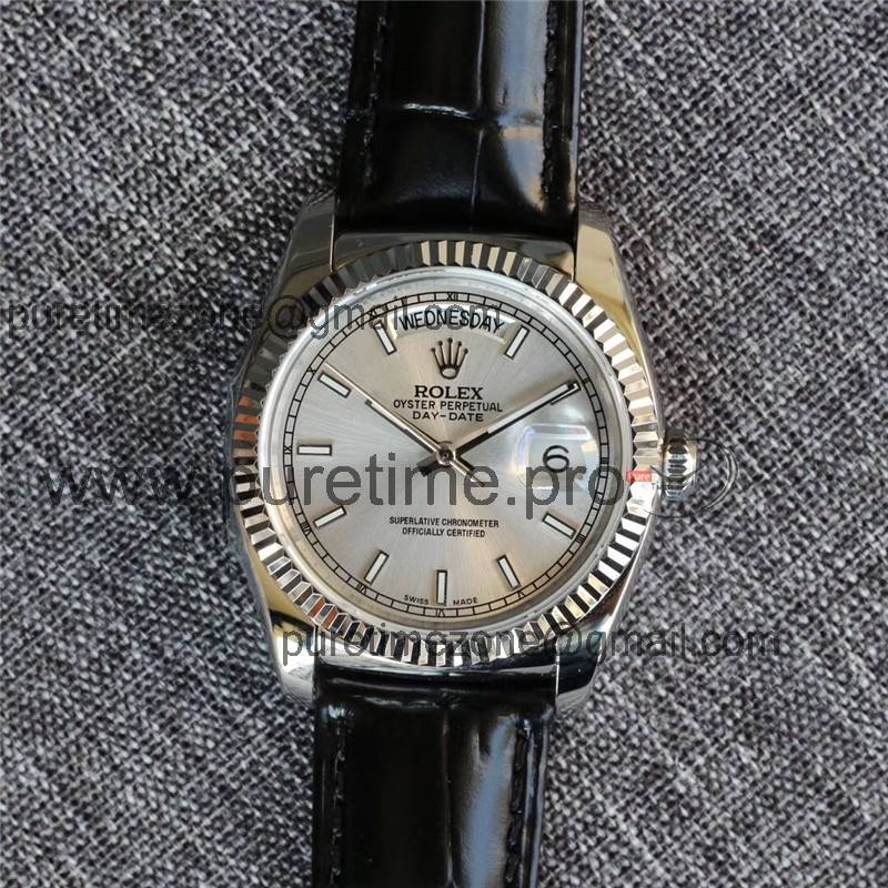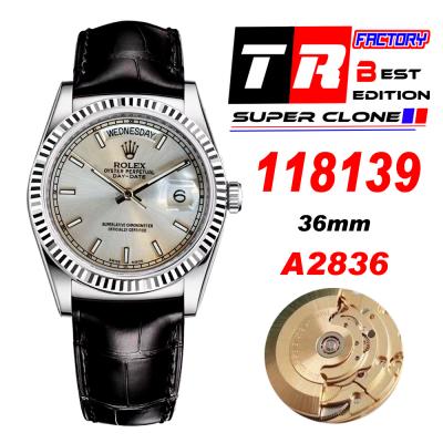 Home Rolex Day-Date Day-Date 118139 36mm A2836 Automatic Mens Watch Best Edition TRF Stainless Steel Silver Dial Black Leather