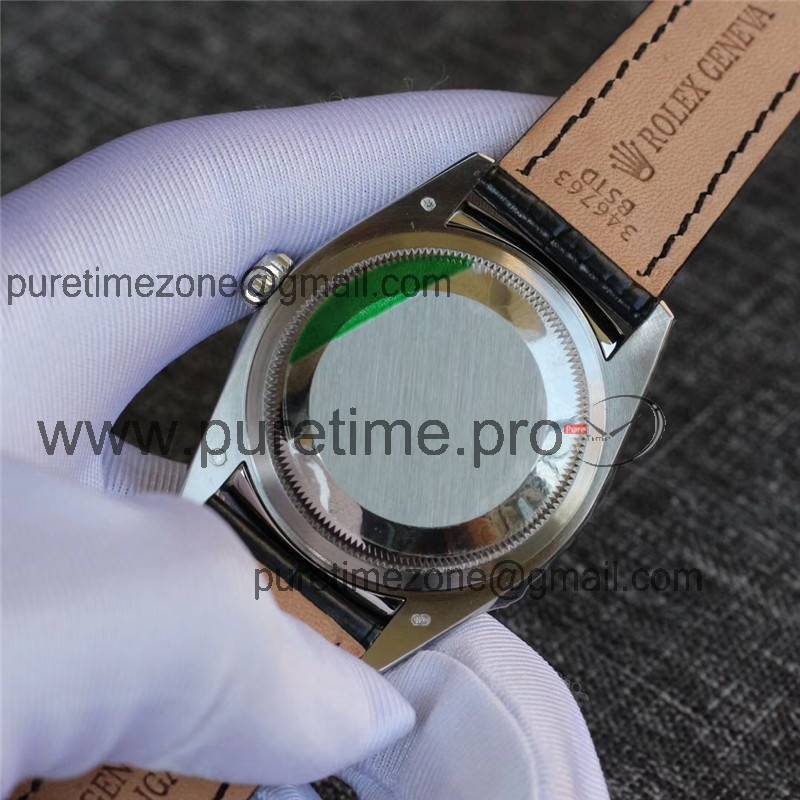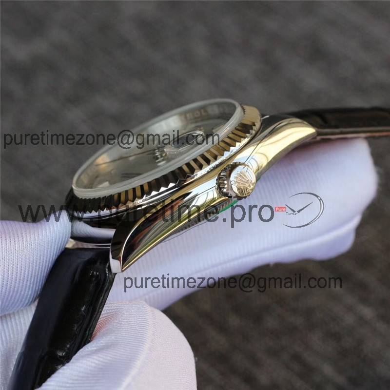 Day-Date 118138 36mm A2836 Automatic Mens Watch Best Edition TRF Rose Gold Silver DialBlack Leather