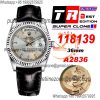 TRF Day-Date 118139 36mm A2836 Automatic Mens Watch Black Dial Diamond Black Leather Best Edition