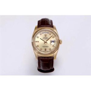Day-Date 118138 36mm A2836 Automatic Mens Watch Best Edition TRF YG Gold Dial Diamond Brown Leather