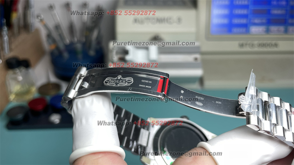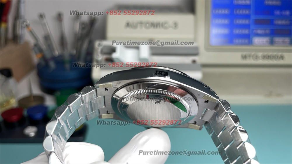 Movement: Platinum Plated Asia DanDong Clone VS3255 Automatic (28800bph) with decorated bridges & plates like the real Rolex Caliber 3255;
