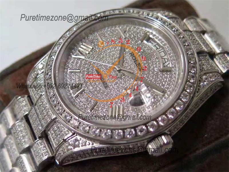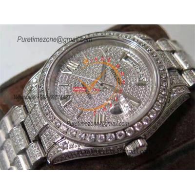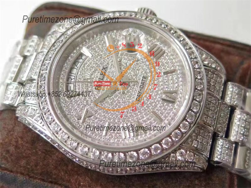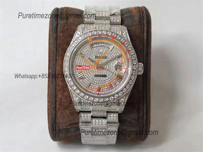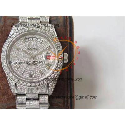 Daydate A21J Automatic Mens Watch Best Edition TWF YG Paved Diaomond Stcik Dial Fully Ice Out 904L Steel Bracelet $480.00 $400.00