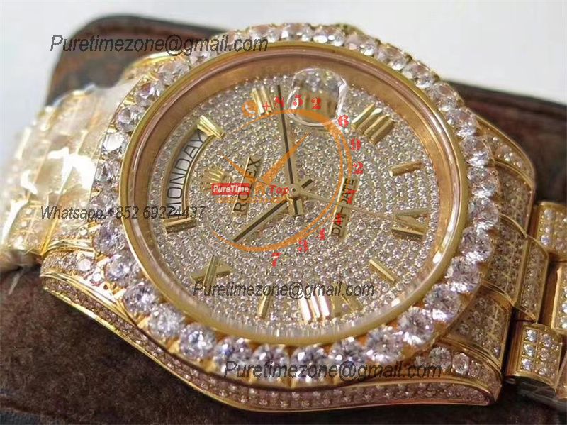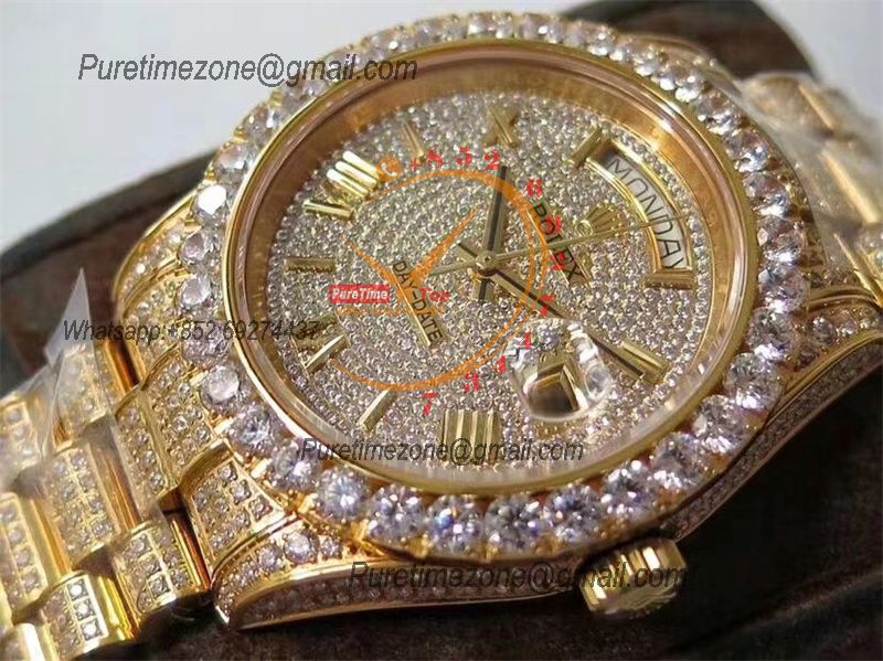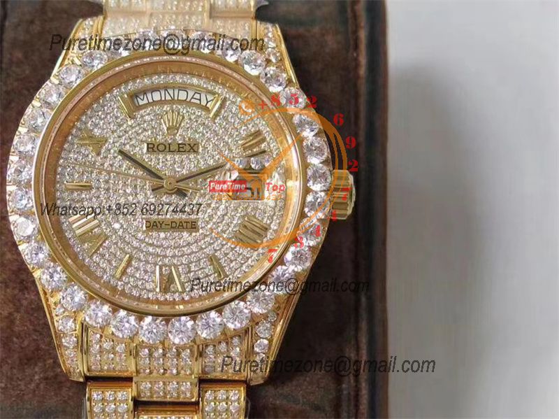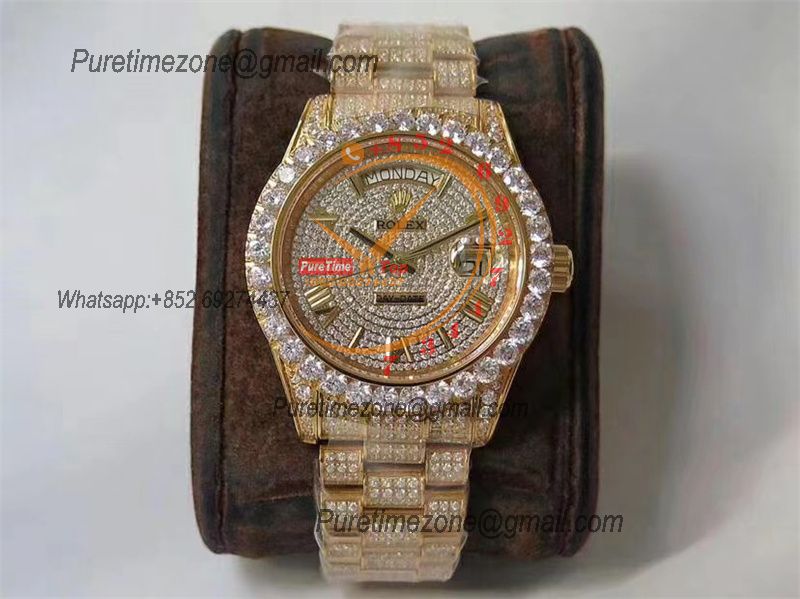 Day-Date 40 228348 A2836 Mens Watch Best Edition TWF Paved Diaomond Roman Dial Fully Ice Out 904L Steel Bracelet $960.00 $800.00