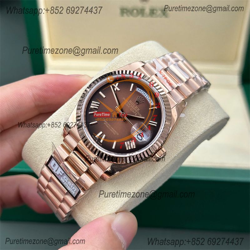 DayDate 36 128235 A2836 Automatic Mens Watch Best Edition QF V5 RG Brown Roman Dial President Bracelet CHS (Gain Weight)