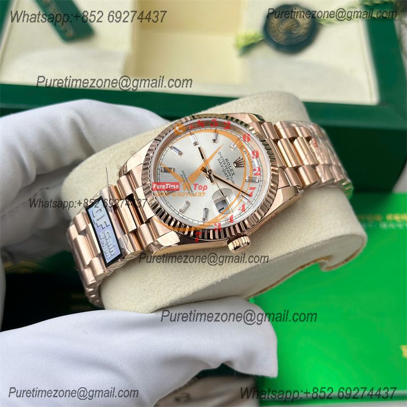 DayDate 36 128235 A2836 Automatic Mens Watch Best Edition QF V5 RG Silver Crystal Dial President Bracelet CHS (Gain Weig