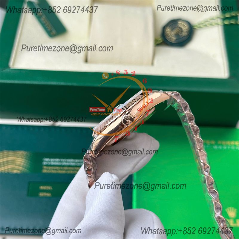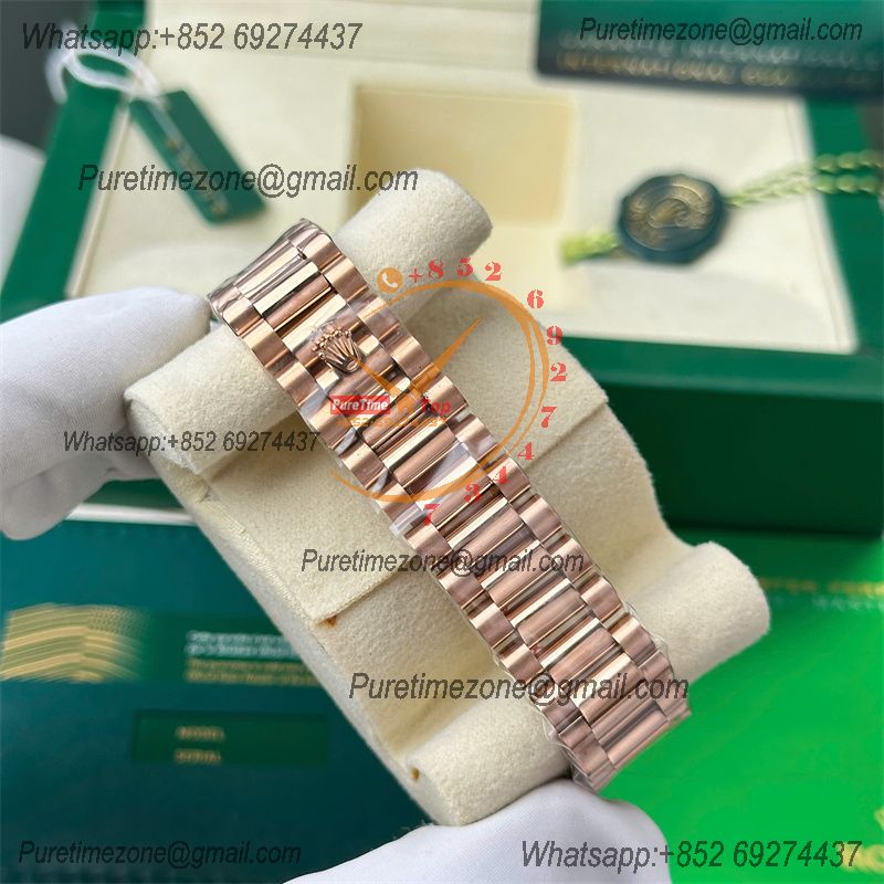 Day-Date 118138 36mm A2836 Automatic Mens Watch Best Edition TRF Rose Gold Silver DialBlack Leather