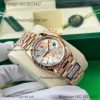 Strap:18K rose gold plated solid 904L stainless steel bracelet, Cu-W metal to increase watch weight to match the genuine gold watch weight