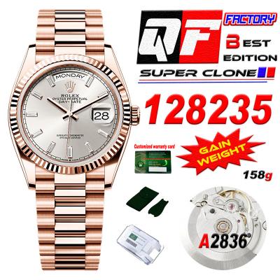 Home Rolex Day-Date DayDate 36 128235 A2836 Automatic Mens Watch Best Edition QF V5 RG Silver Crystal Dial President Bracelet CHS (Gain Weig
