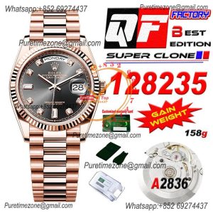 DayDate 36 128235 A2836 Automatic Mens Watch Best Edition QF V5 RG Gray Diamonds Dial President Bracelet CHS (Gain Weigh $876.00 $730.00