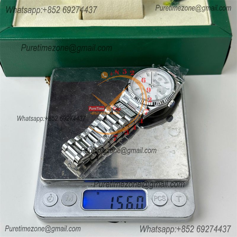 Day-Date 118139 36mm A2836 Automatic Mens Watch Best Edition TRF Stainless Steel Silver Dial Black Leather