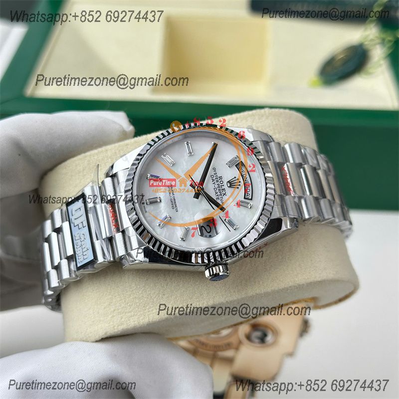 DayDate 36 128236 A2836 Automatic Mens Watch Best Edition QF V5 MOP Crystal Dial President Bracelet CHS (Gain Weight)