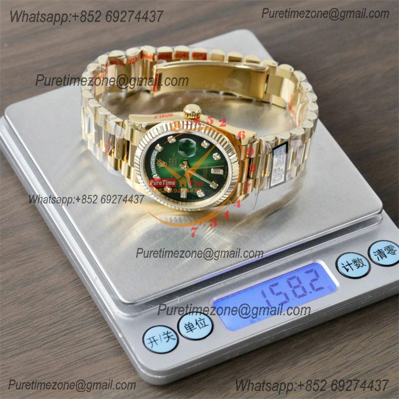 EWF DayDate 36 128348 A2836 Automatic Mens Watch YG Diamond Bezel Green Dial President Bracelet Best Edition