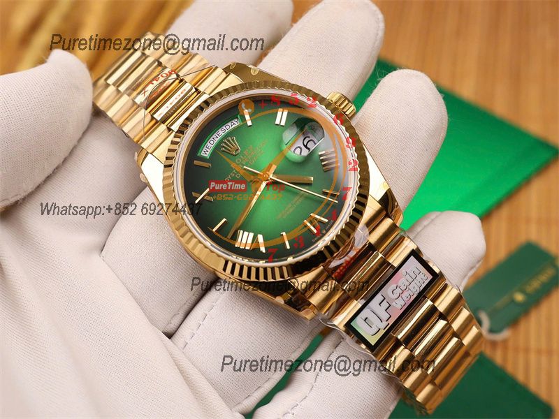 Day-Date 118138 36MM A2836 Automatic Mens Watch Best Edition TRF Yellow Gold Gold DialGreen Leather