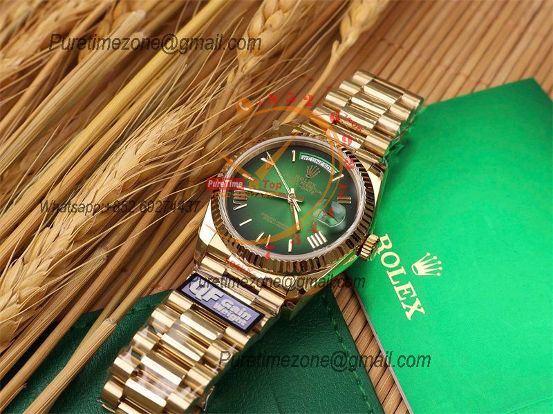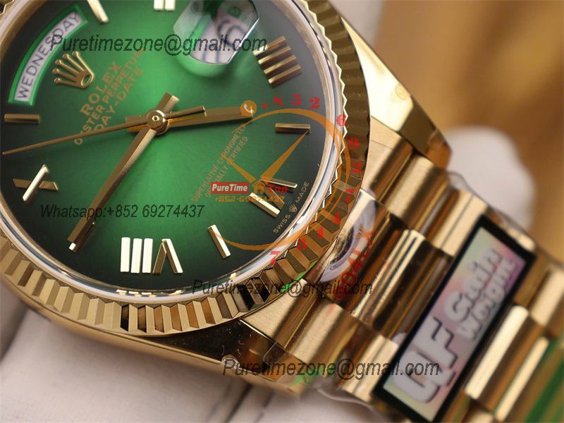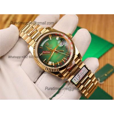 DayDate 36 128236 A2836 Automatic Mens Watch Best Edition QF V5 YG Green Roman Dial President Bracelet CHS (Gain Weight)