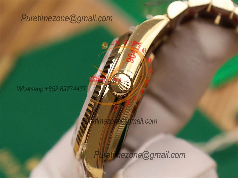 Strap:18K yellow gold plated solid 904L stainless steel bracelet, Cu-W metal to increase watch weight to match the genuine gold watch weight