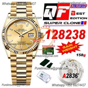 DayDate 36 128236 A2836 Automatic Mens Watch Best Edition QF V5 YG Champagne Crystal Dial President Bracelet (Gain Weigh $876.00 $730.00