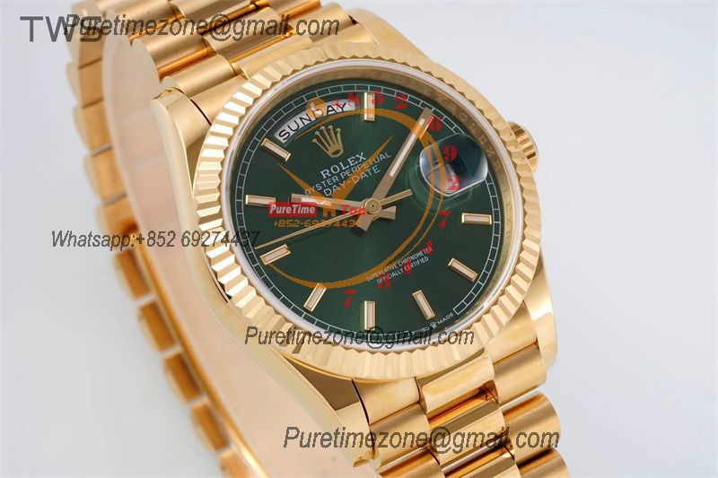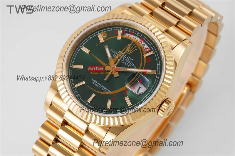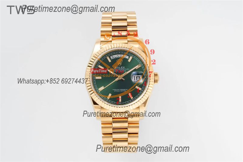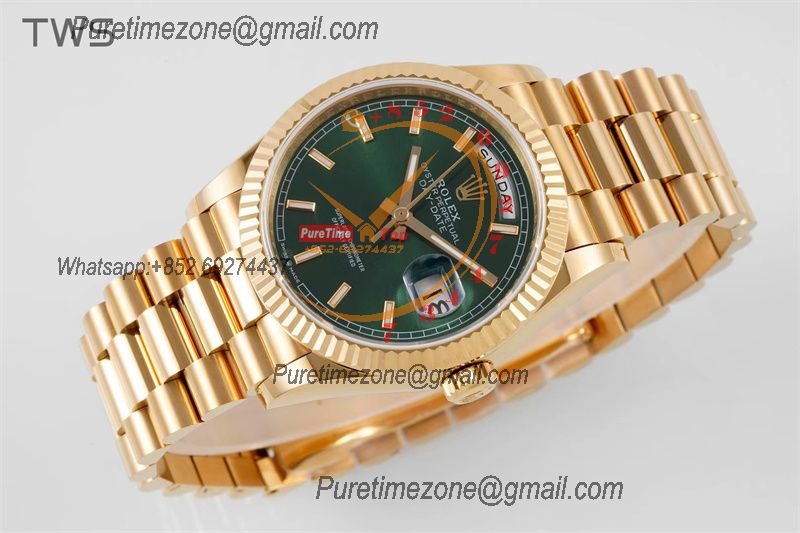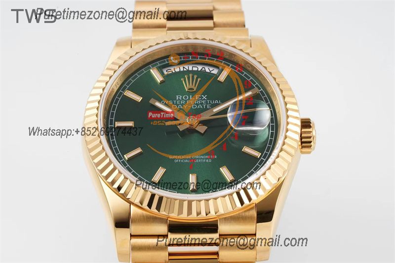 Home Rolex Day-Date DayDate 36 128238 A2836 Automatic Womens Watch Best Edition TWSF YG Green Stick Dial President Bracelet CHS