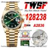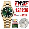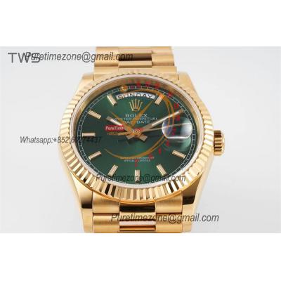 Home Rolex Day-Date DayDate 36 128238 A2836 Automatic Womens Watch Best Edition TWSF YG Green Stick Dial President Bracelet CHS