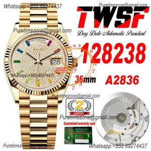 DayDate 36 128238 A2836 Automatic Womens Watch Best Edition TWSF YG Pave Rainbow Diamond Dial President Bracelet CHS $600.00 $500.00