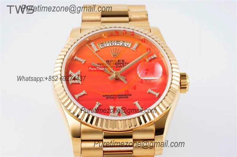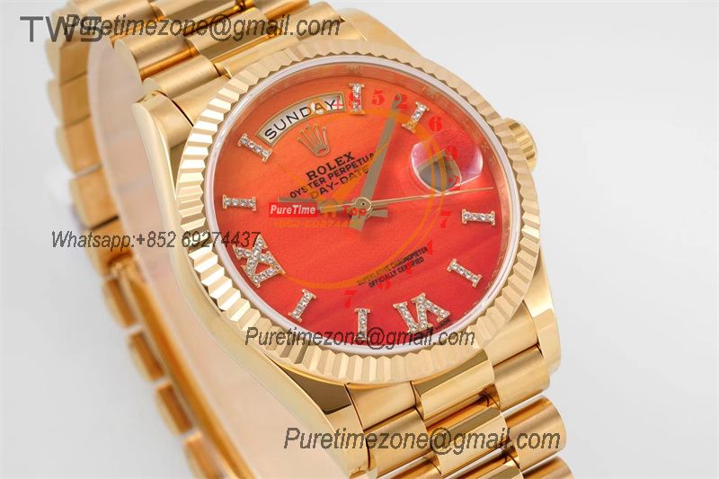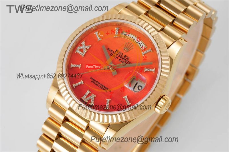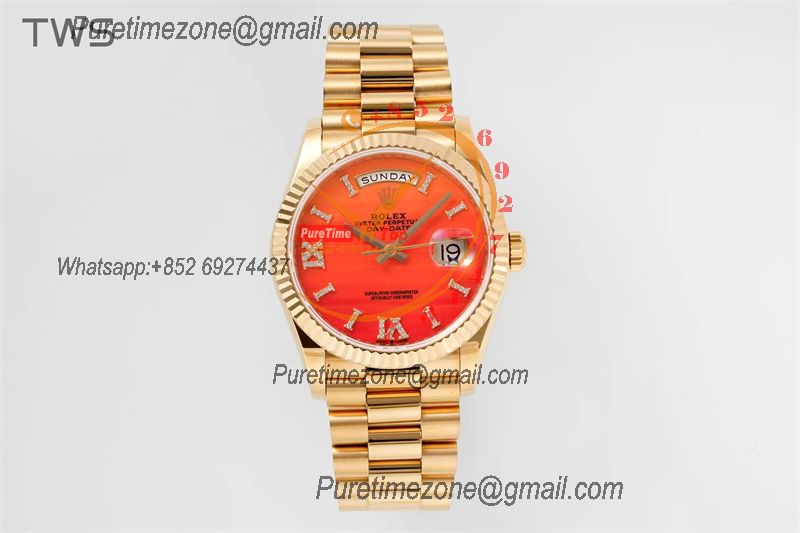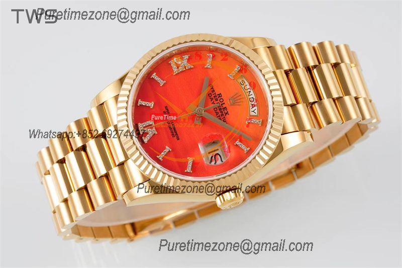 Home Rolex Day-Date DayDate 36 128238 A2836 Automatic Womens Watch Best Edition TWSF YG Orange Carnelian Dial President Bracelet CHS