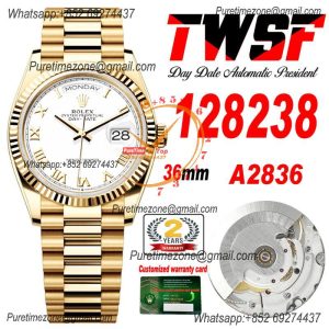 DayDate 36 128238 A2836 Automatic Womens Watch Best Edition TWSF YG White Roman Dial President Bracelet CHS $564.00 $470.00