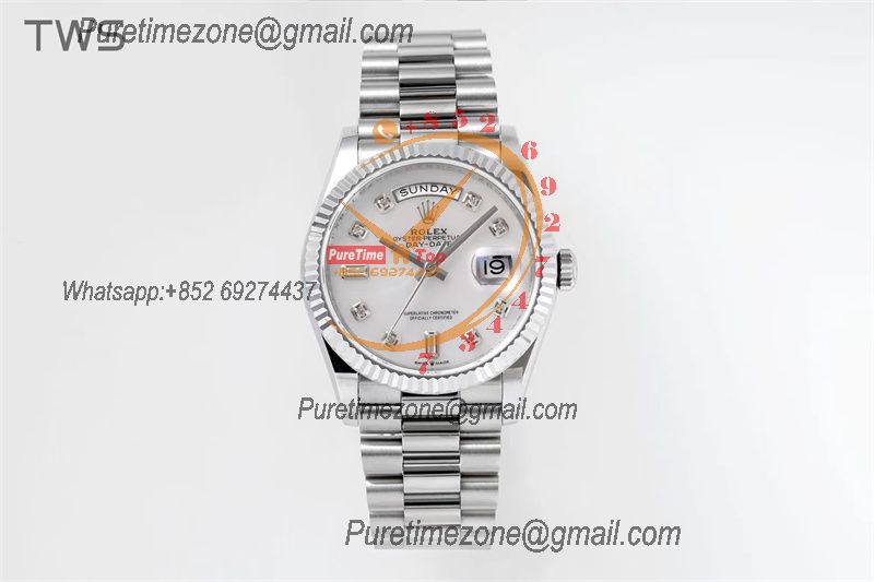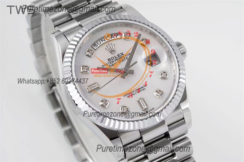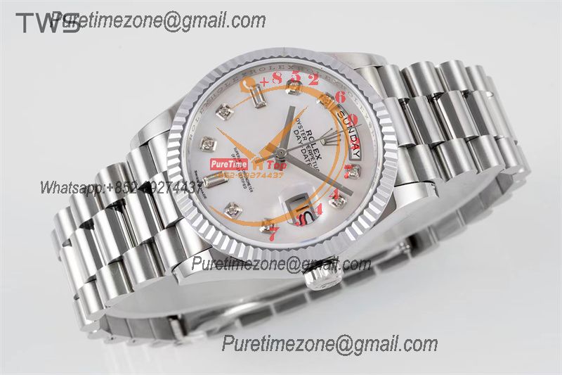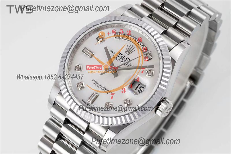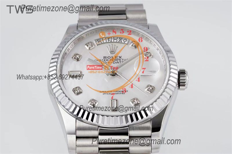 EWF DayDate 36 128348 A2836 Automatic Mens Watch RG Diamond Bezel MOP Dial SS President Bracelet Best Edition
