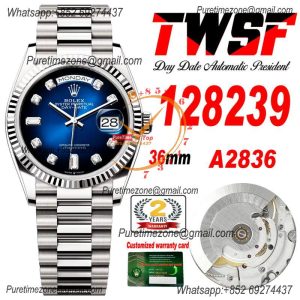DayDate 36 128239 A2836 Automatic Womens Watch Best Edition TWSF Blue Ombre Diamond Dial President Bracelet CHS $528.00 $440.00