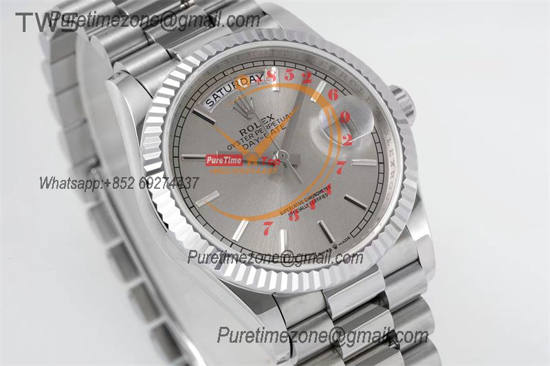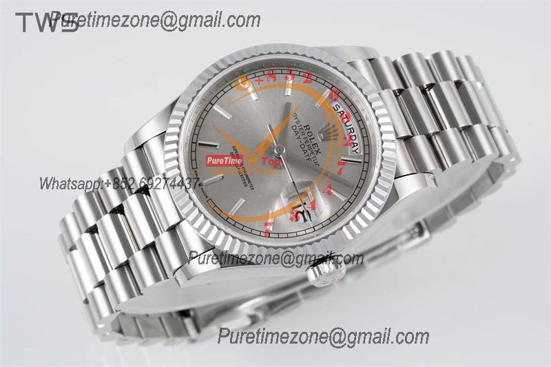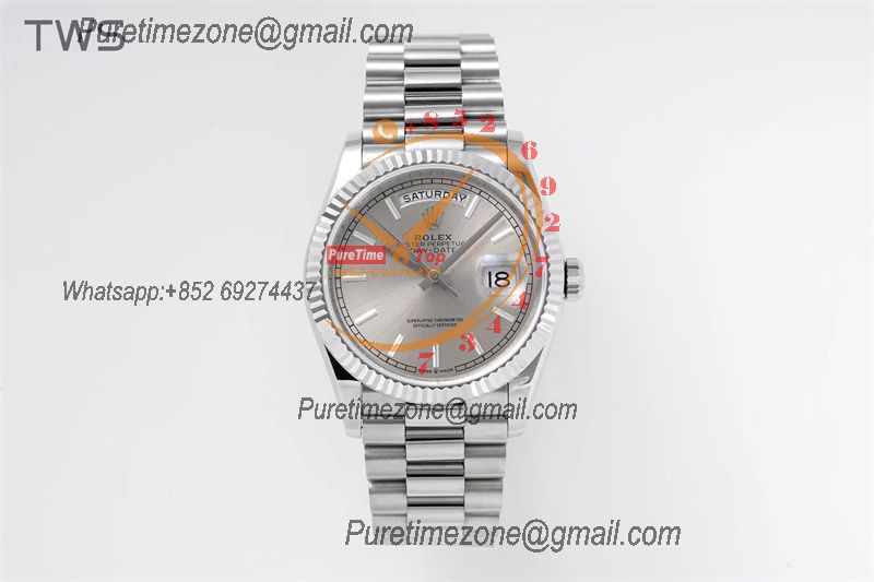 Home Rolex Day-Date DayDate 36 128239 A2836 Automatic Womens Watch Best Edition TWSF Silver Stick Dial President Bracelet CHS