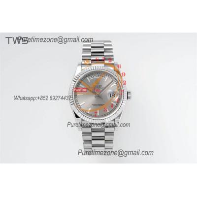 Day-Date 118139 36mm A2836 Automatic Mens Watch Best Edition TRF Stainless Steel Silver Dial Black Leather