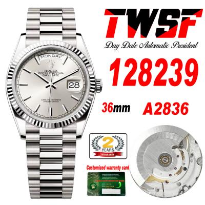 Home Rolex Day-Date DayDate 36 128239 A2836 Automatic Womens Watch Best Edition TWSF Silver Stick Dial President Bracelet CHS