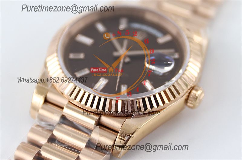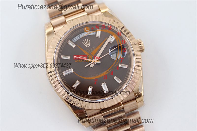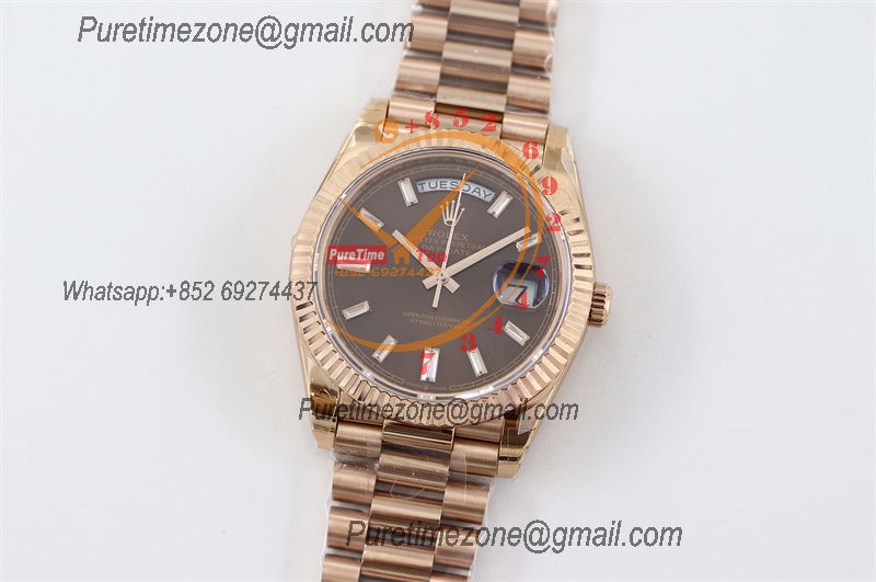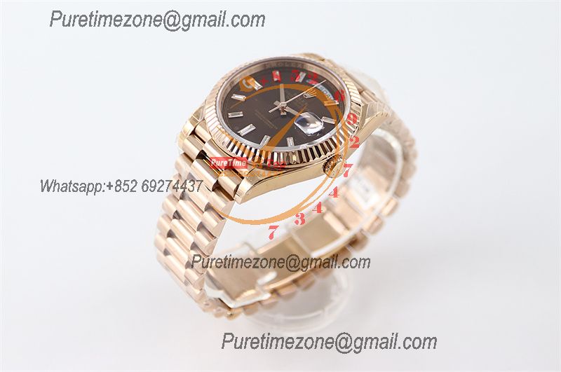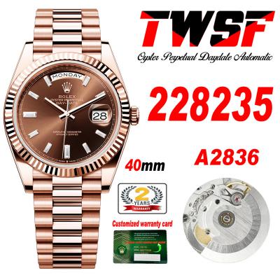Home Rolex Day-Date DayDate 40 228235 A2836 Automatic Mens Watch Best Edition TWSF RG Brown Baguette Diamond Dial President Bracelet CHS
