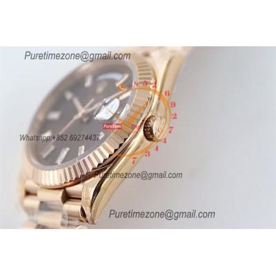 EWF DayDate 36 128348 A2836 Automatic Mens Watch RG Diamond Bezel Dark Brown Dial SS President Bracelet Best Edition