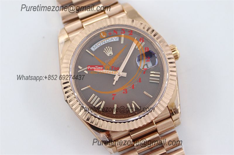 DayDate 40 228235 A2836 Automatic Mens Watch Best Edition TWSF RG Brown Roman Dial President Bracelet CHS
