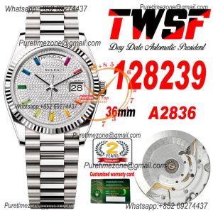 DayDate 36 128239 A2836 Automatic Womens Watch Best Edition TWSF Pave Rainbow Diamond Dial President Bracelet CHS $588.00 $490.00