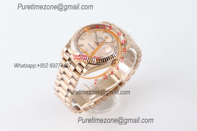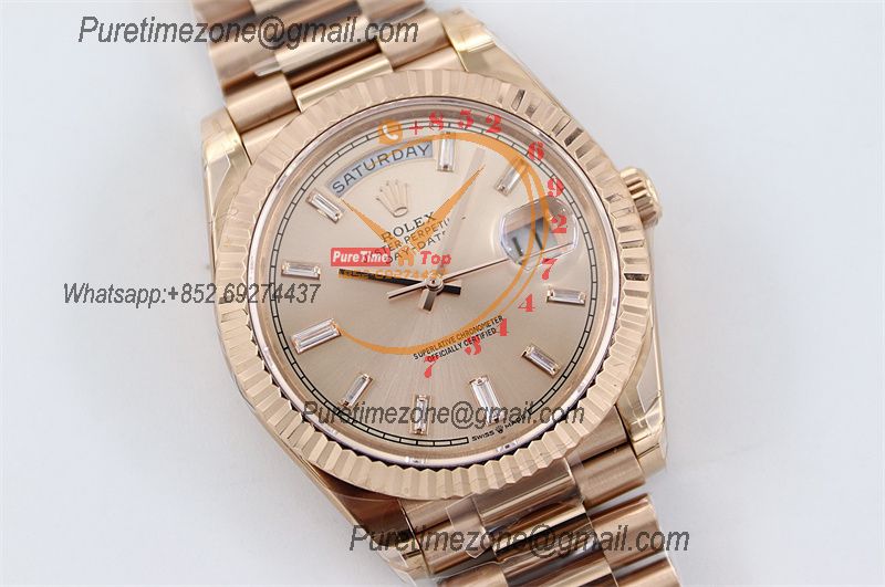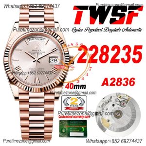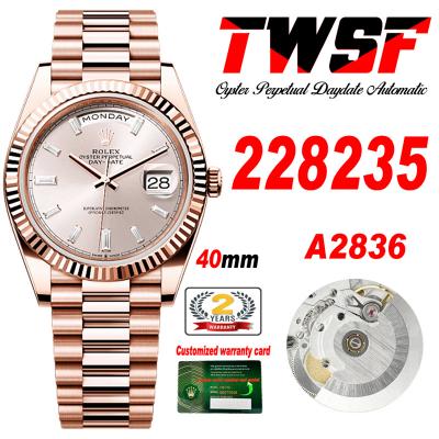 Home Rolex Day-Date DayDate 40 228235 A2836 Automatic Mens Watch Best Edition TWSF RG Sundust Baguette Diamond Dial President Bracelet CHS