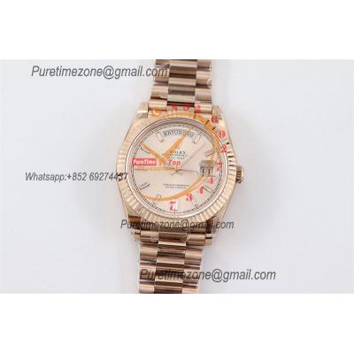 Day-Date 118138 36mm A2836 Automatic Mens Watch Best Edition TRF Rose Gold Silver DialBlack Leather