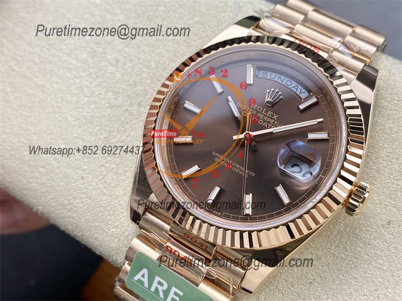 DayDate 40 228235 VR3255 Automatic Mens Watch Best Edition ARF RG Brown Dial President Bracelet CHS (Gain Weight)