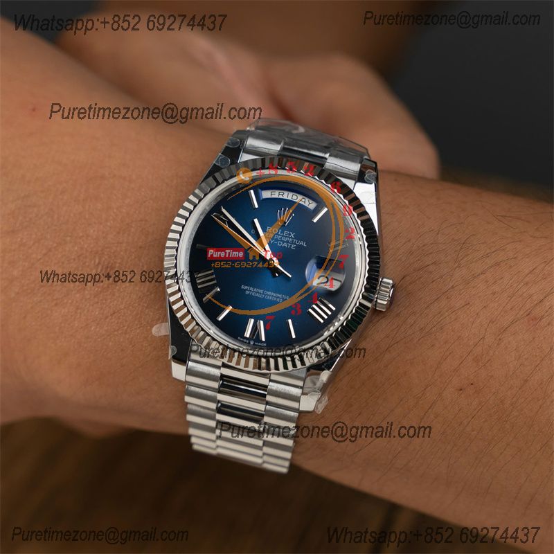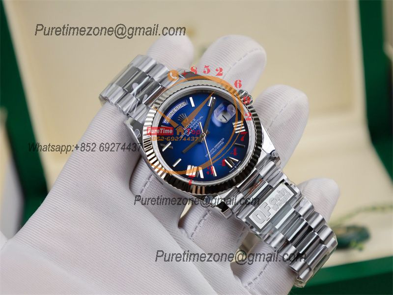 DayDate 40 228236 A2836 Automatic Mens Watch Best Edition QF V5 Blue Roman Dial President Bracelet (Gain Weight)