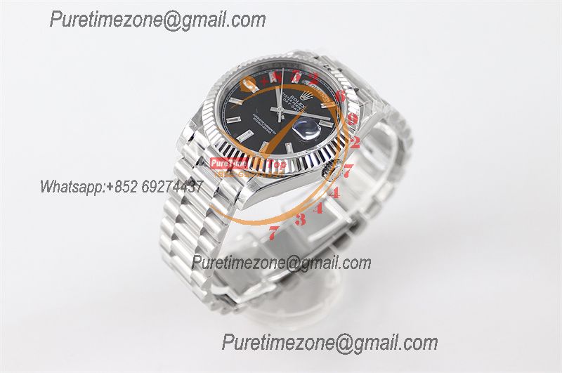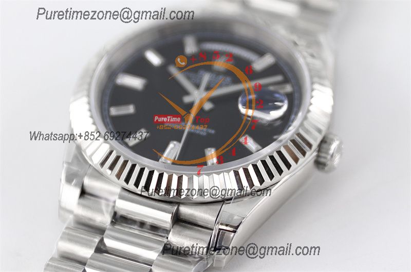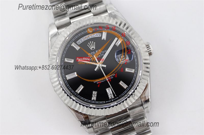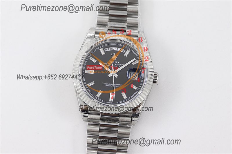 Home Rolex Day-Date DayDate 40 228236 A2836 Automatic Mens Watch Best Edition TWSF Black Baguette Diamonds Dial President Bracelet CHS