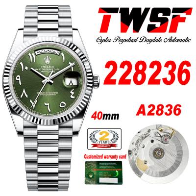 DayDate 40 228236 A2836 Automatic Mens Watch Best Edition TWSF Green Arabic Script Dial President Bracelet CHS
