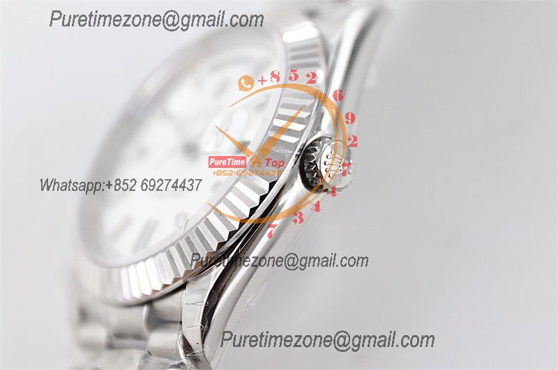EWF DayDate 36 128349 A2836 Automatic Mens Watch Diamond Bezel Silver Dial SS President Bracelet Best Edition
