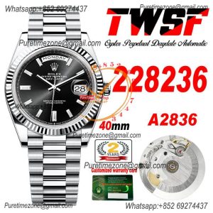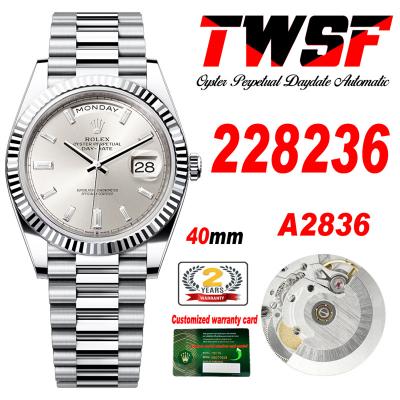 Home Rolex Day-Date DayDate 40 228236 A2836 Automatic Mens Watch Best Edition TWSF Silver Diamonds Dial President Bracelet CHS