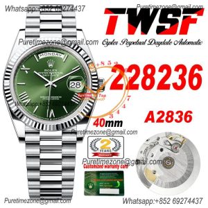 DayDate 40 228236 A2836 Automatic Mens Watch Best Edition TWSF Olive Green Roman Dial President Bracelet CHS $540.00 $450.00