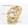 Day-Date 118138 36mm A2836 Automatic Mens Watch Best Edition TRF Yellow Gold Silver Dial Green Leather