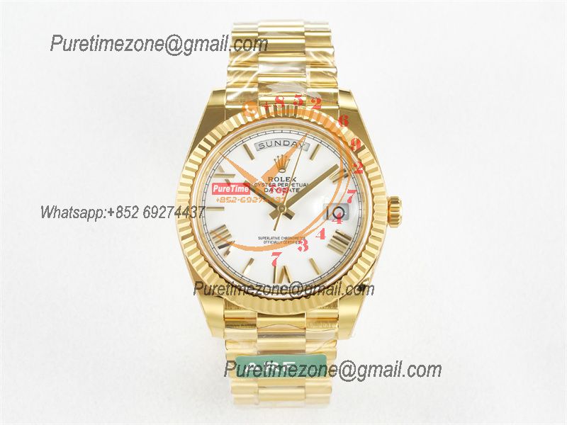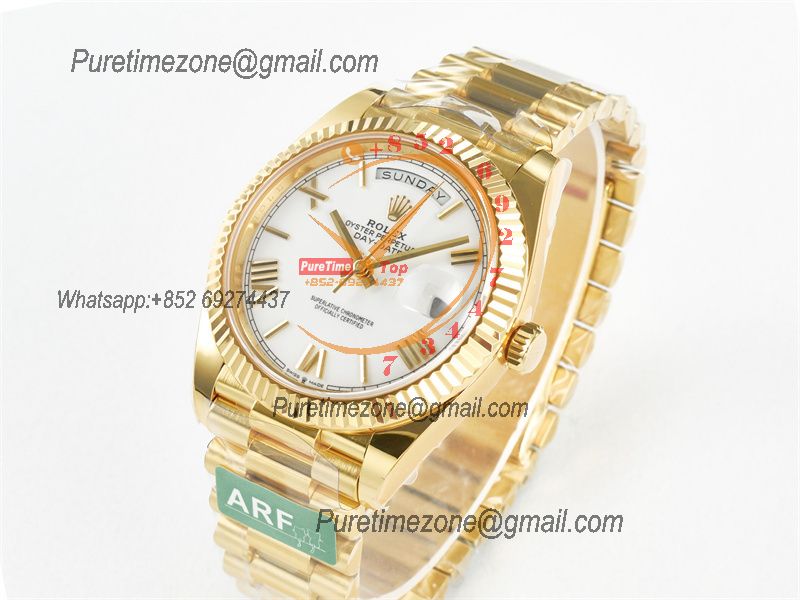 DayDate 40 228238 VR3255 Automatic Mens Watch Best Edition ARF YG White Dial President Bracelet CHS (Gain Weight)