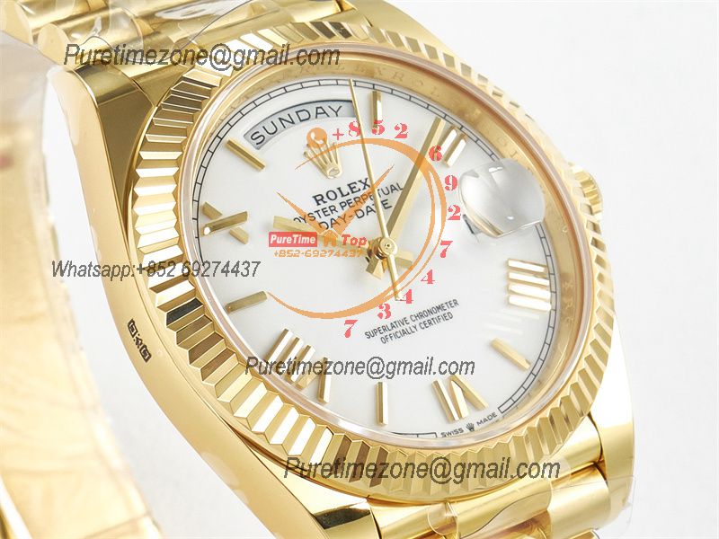 Home Rolex Day-Date DayDate 40 228238 VR3255 Automatic Mens Watch Best Edition ARF YG White Dial President Bracelet CHS (Gain Weight)