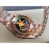 Strap:18K rose gold plated solid 904L stainless steel bracelet, Cu-W metal to increase watch weight to match the genuine gold watch weight