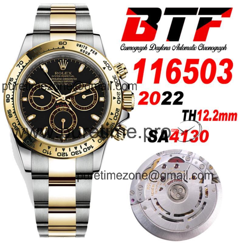 Daytona 116503 SA4130 Automatic Chronograph Mens Watch Best Edition BTF Two Tone YG Black Dial 904L SS Bracelet CHS