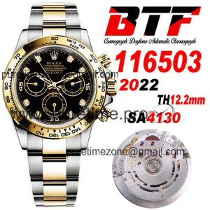 Be the first to review “Daytona 116503 SA4130 Automatic Chronograph Mens Watch Best Edition BTF Two Tone YG Black Dial 904L SS Bracelet CHS” Cancel reply