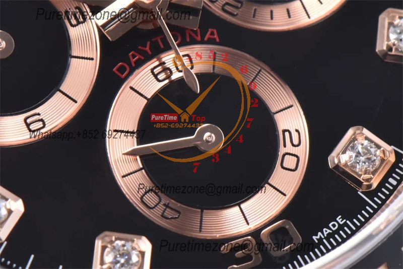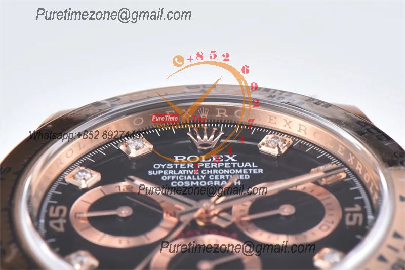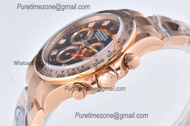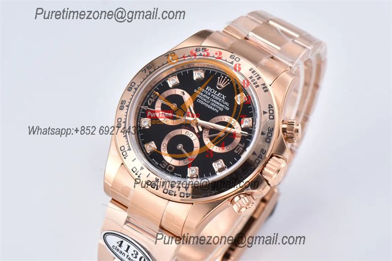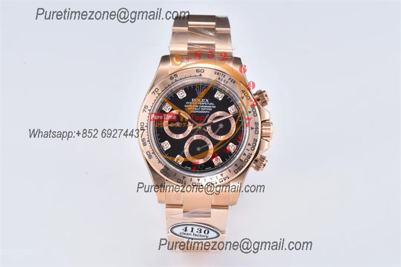 Daytona 116505 SA4130 Automatic Chronograph Mens Watch Best Edition CLEAN V3 RG Black Diamonds Dial 904L Steel Bracelet